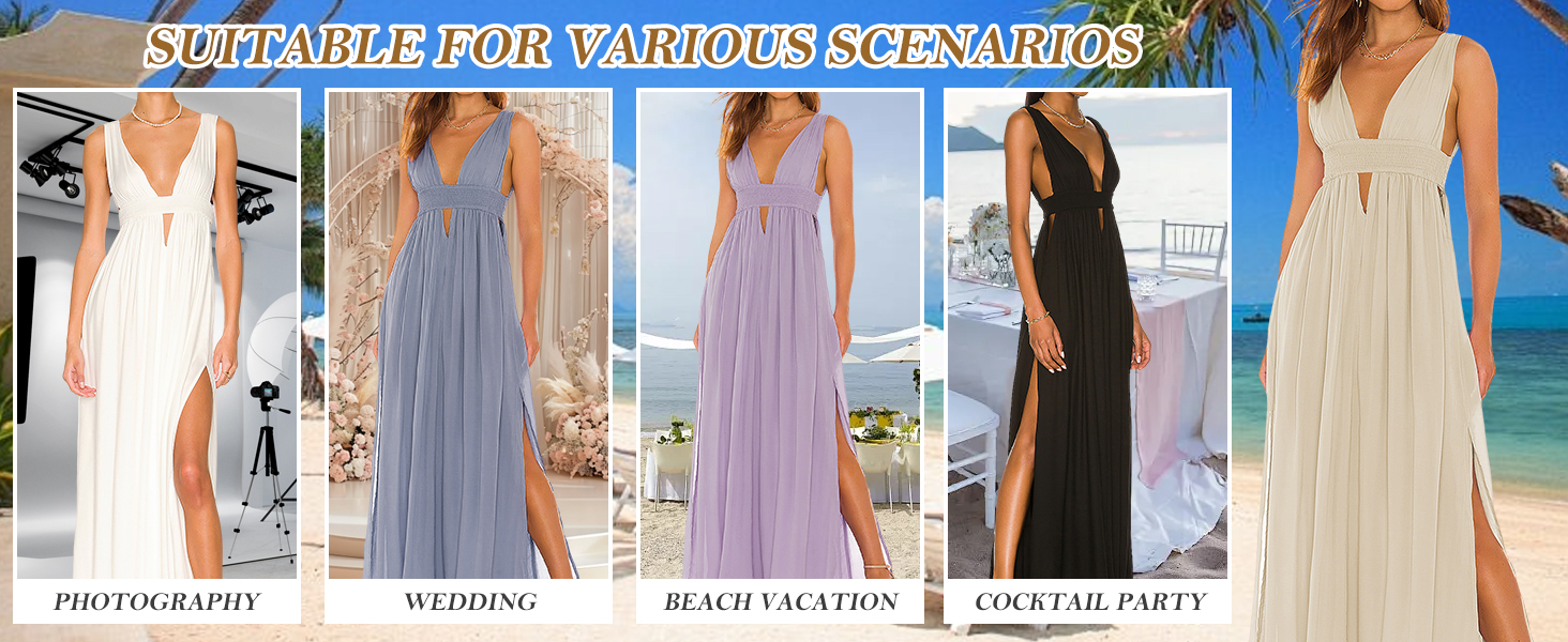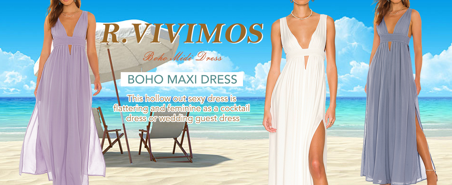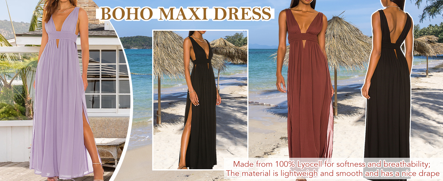 R.Vivimos Women's Summer Deep V Neck Maxi Dresses