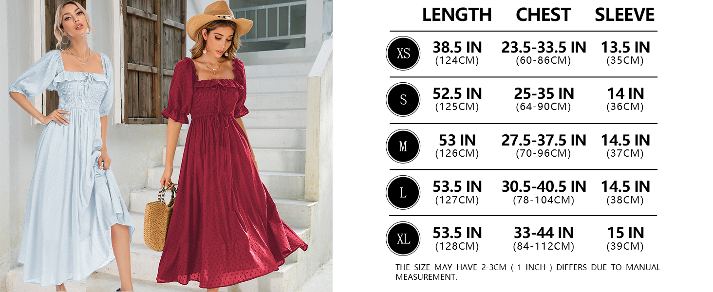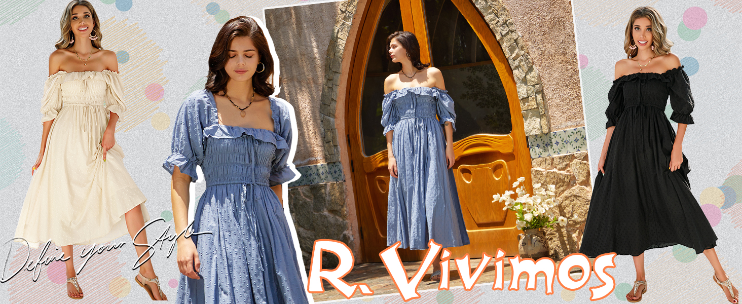 R.Vivimos Square Neck Elastic Smocked Long Dresses for Women