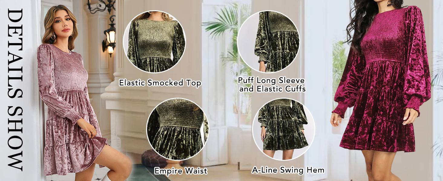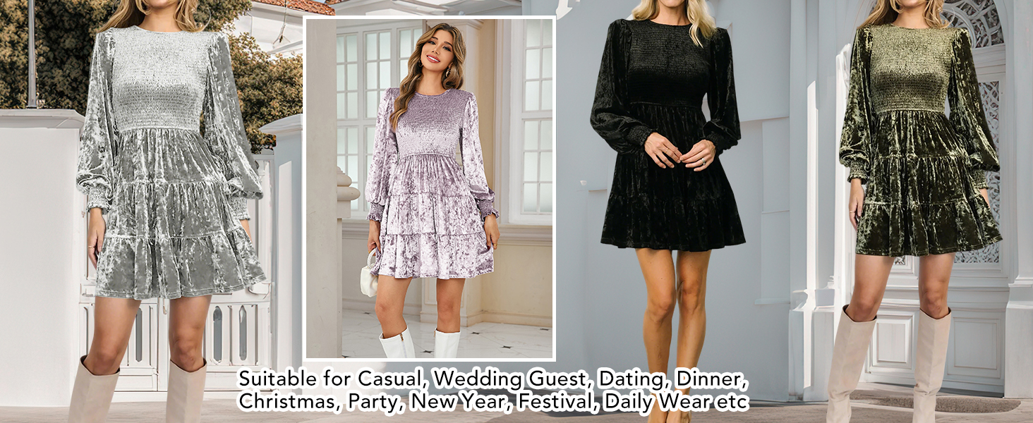This empire waist dress is the mini length. Sandals, heels or boots work well with this length; It will be a stunning addition if you are building your fall winter wardrobe