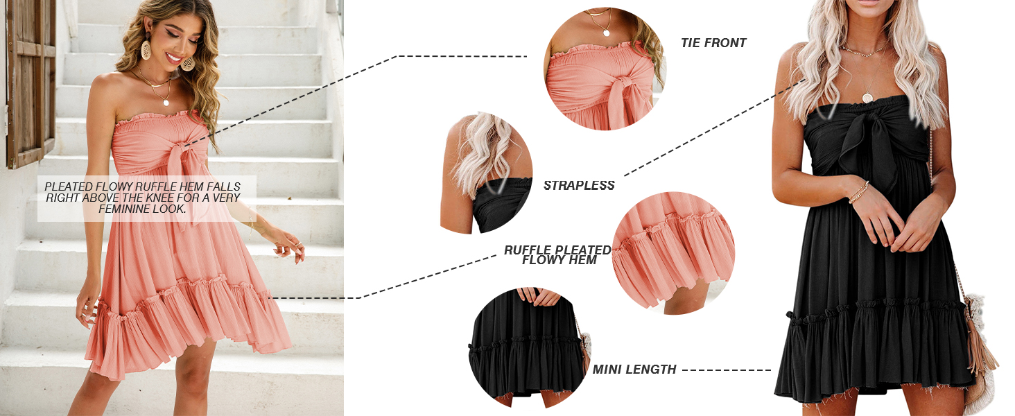 The tube top design shows the curves of your collarbone and shoulder perfectly. The tie front and ruffle hem gives the hot look and summer Bohemian vibe. Suitable for Beach, Vacation, Carnival, Holiday, Party, Wine Tasting, Cruise, Prom, Club, Outdoorsy Photo Shoot, etc.