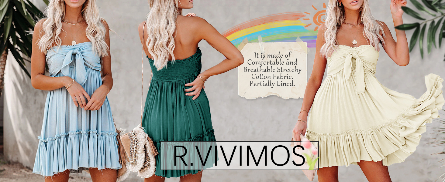 R.Vivimos Women's Strapless Solid Color Cute Short Dresses